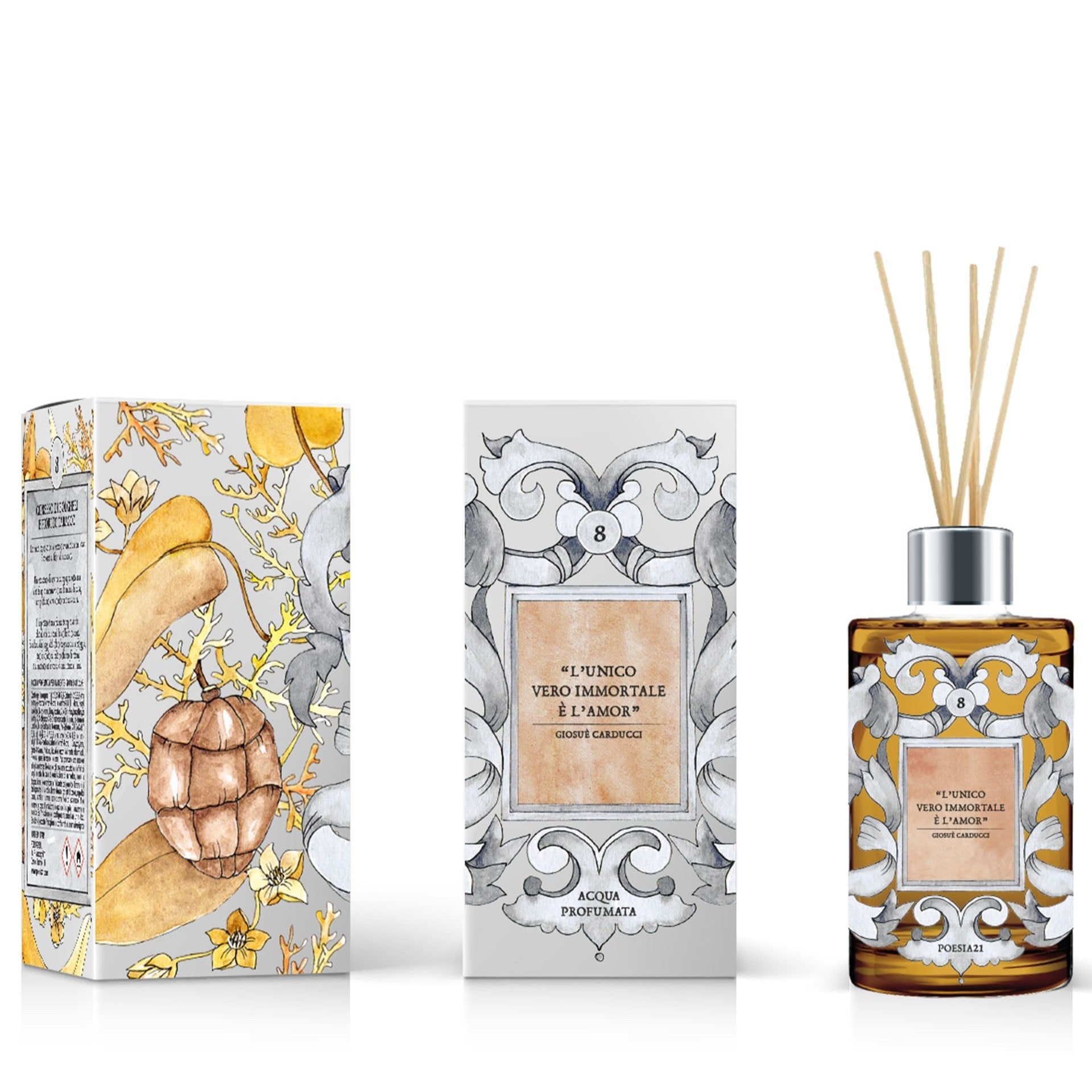 Posiziona il diffusore su una superficie stabile, lontano da fonti di calore e luce diretta. Inserisci i bastoncini nel flacone e lascia che assorbano gradualmente la fragranza. Per un’intensità maggiore, capovolgi i bastoncini una o due volte alla settimana. Ideale per profumare con eleganza zone giorno, camere da letto o studi.