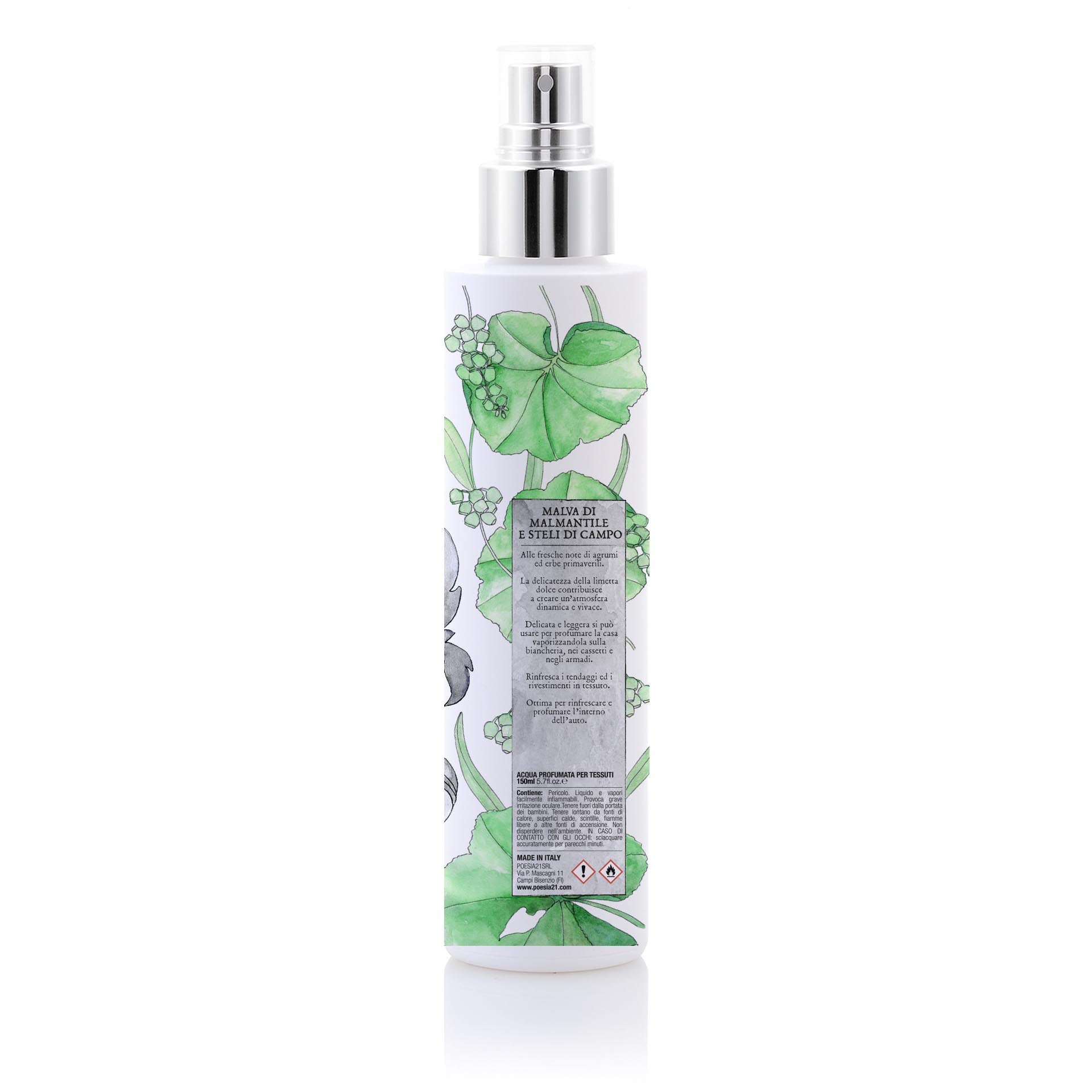 Le fresche note di agrumi e di erbe primaverili si fondono con la delicatezza della limetta dolce, dando vita a una fragranza luminosa e vitale. Un profumo che racchiude l’energia del sole e la leggerezza dei primi giorni di primavera, capace di infondere buonumore, freschezza e serenità in ogni ambiente. I fiori di malva, che si orientano verso il sole, richiamano il calore dei suoi raggi avvolgenti.
